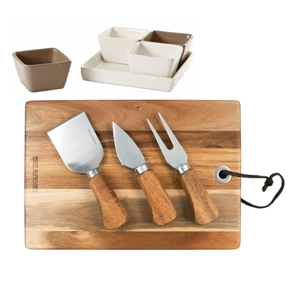 Rectangular Cheese / Serving Board with 3 Cheese Knives & Ceramic 5pc square set